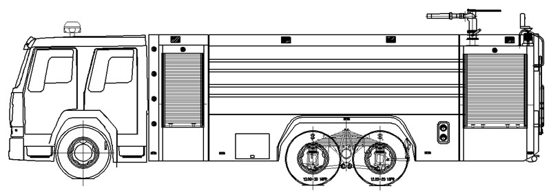 | 總體布置 | 整車由消防員乘員室和車身兩大部分組成,車身布置采用三分體式結(jié)構(gòu),前部為器材箱,忠部為水罐,后部為水泵房,罐體為平行六面體廂式容罐。 |