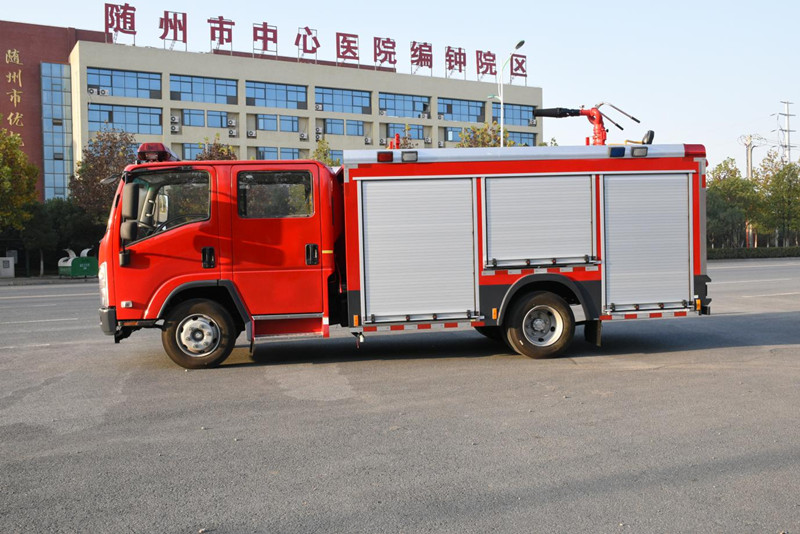 五十鈴700P水罐消防車是由二類汽車底盤、罐體、水泵、管路、儀表電路系統(tǒng)等部件組成,該車裝配鋁合金后爬梯(可拆卸),泵房在整車尾部,罐體為鋼板焊接式,載液量4.0方,水罐材質(zhì)為優(yōu)質(zhì)碳鋼板,水罐內(nèi)部做防腐處理。該車裝備CB10/40消防泵,PS8/40W消防炮。